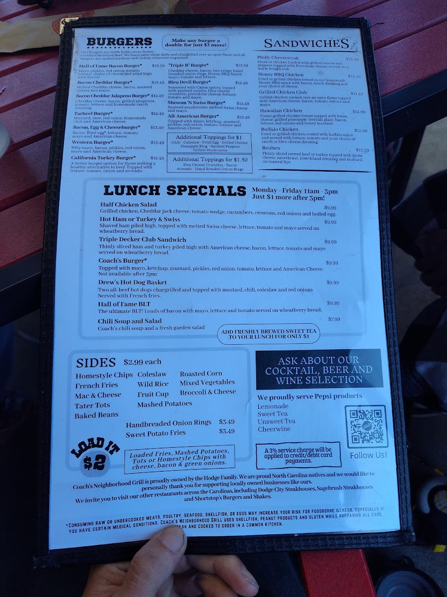 Introducing the Menu at Coach's Neighborhood Grill Asheboro